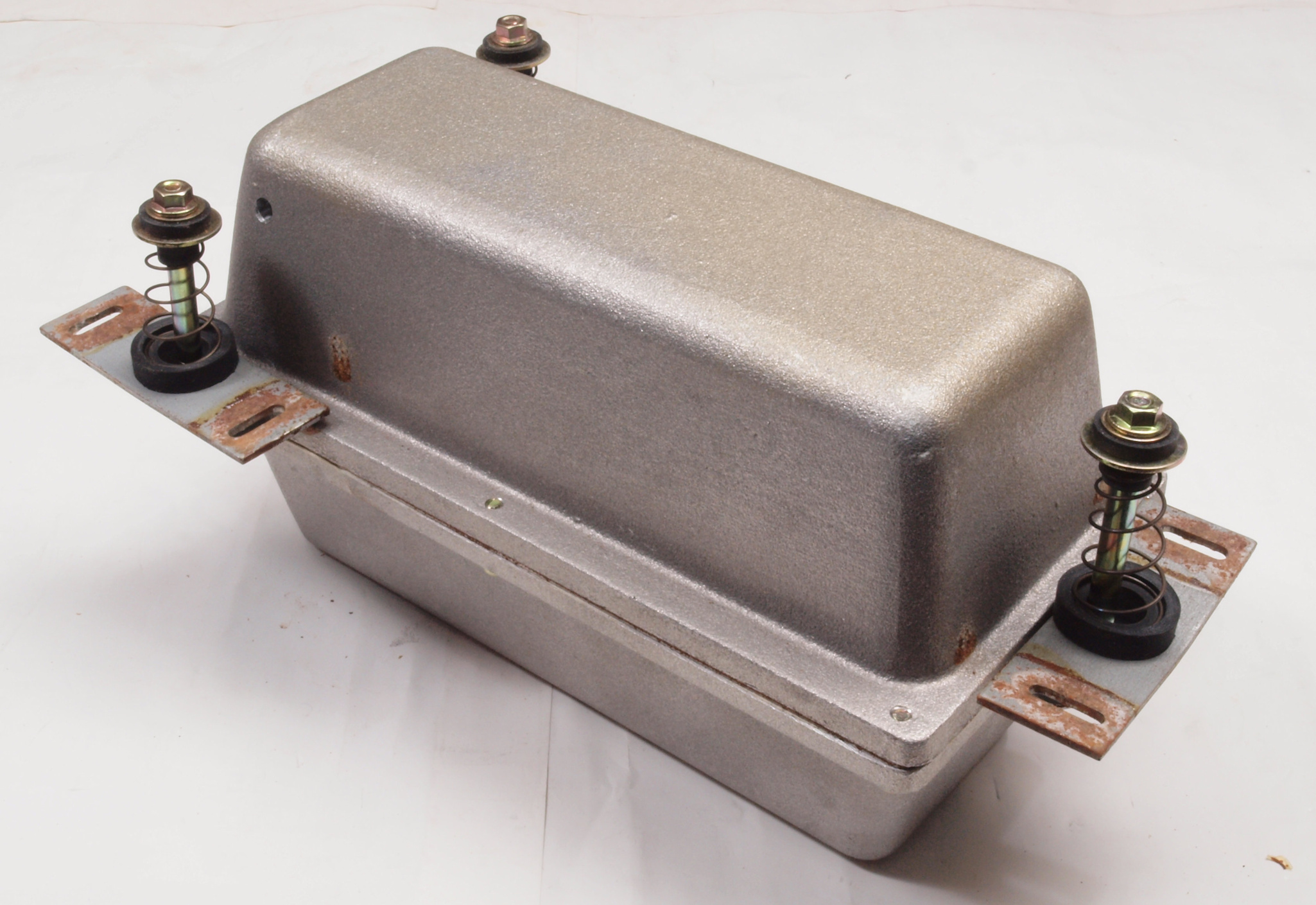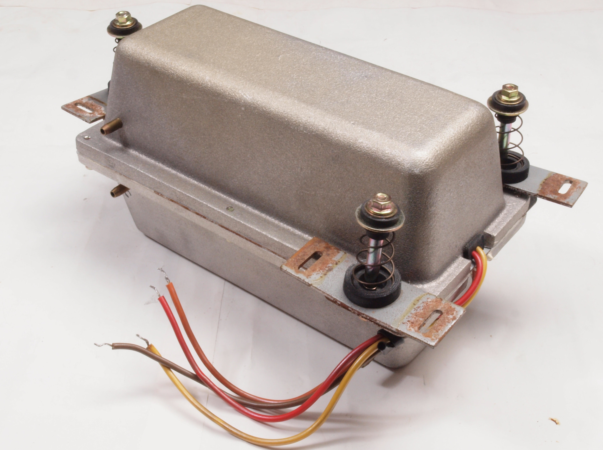 CA4. 修理前 下蓋(底板)裏。 前回の修理で吸気口にボルトが挿入。輸送時に表からポンプを固定するビス、普通は外す。