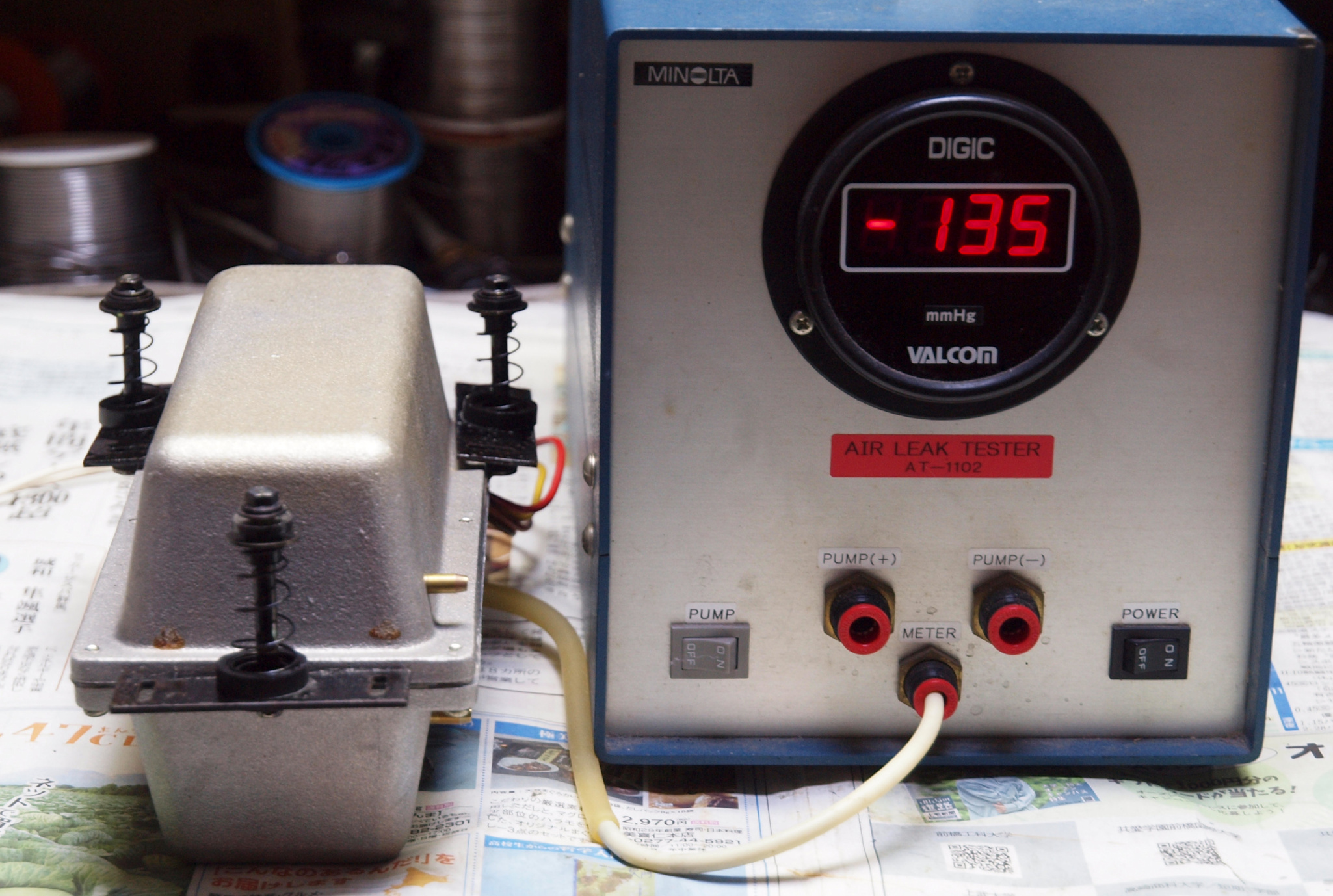 S2. 測定中 「B=吸い込みポンプ」の圧力測定。低い、50〜80位欲しい。