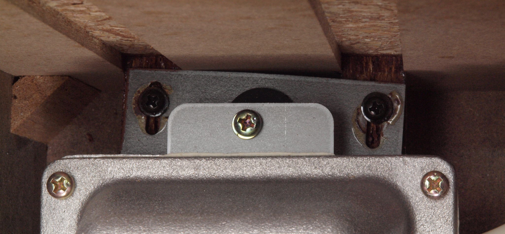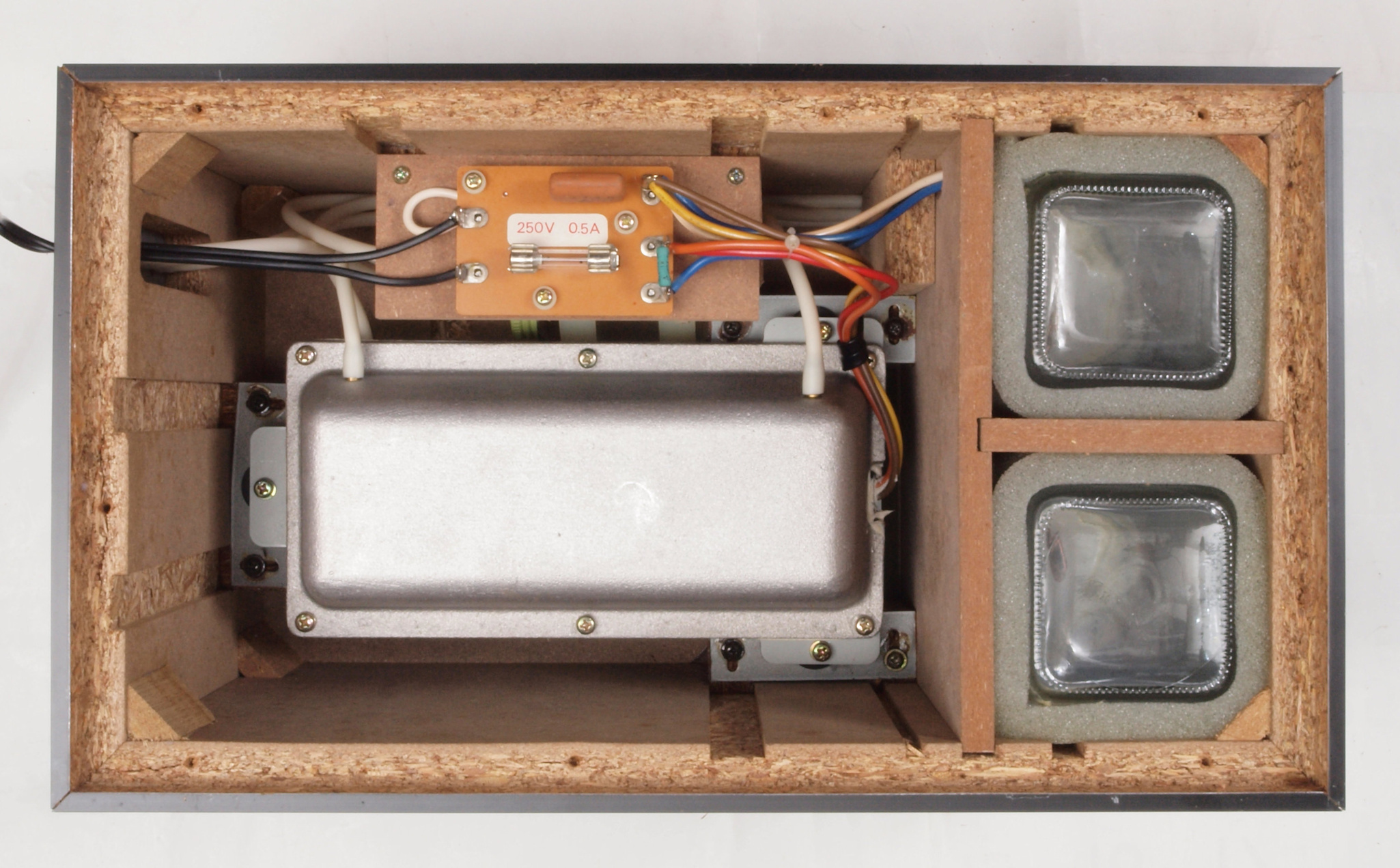 C72. 修理中 ヒューズ取付圧縮板表。 圧縮板にボンドを塗って固めている、ヒューズ取付圧縮板表。