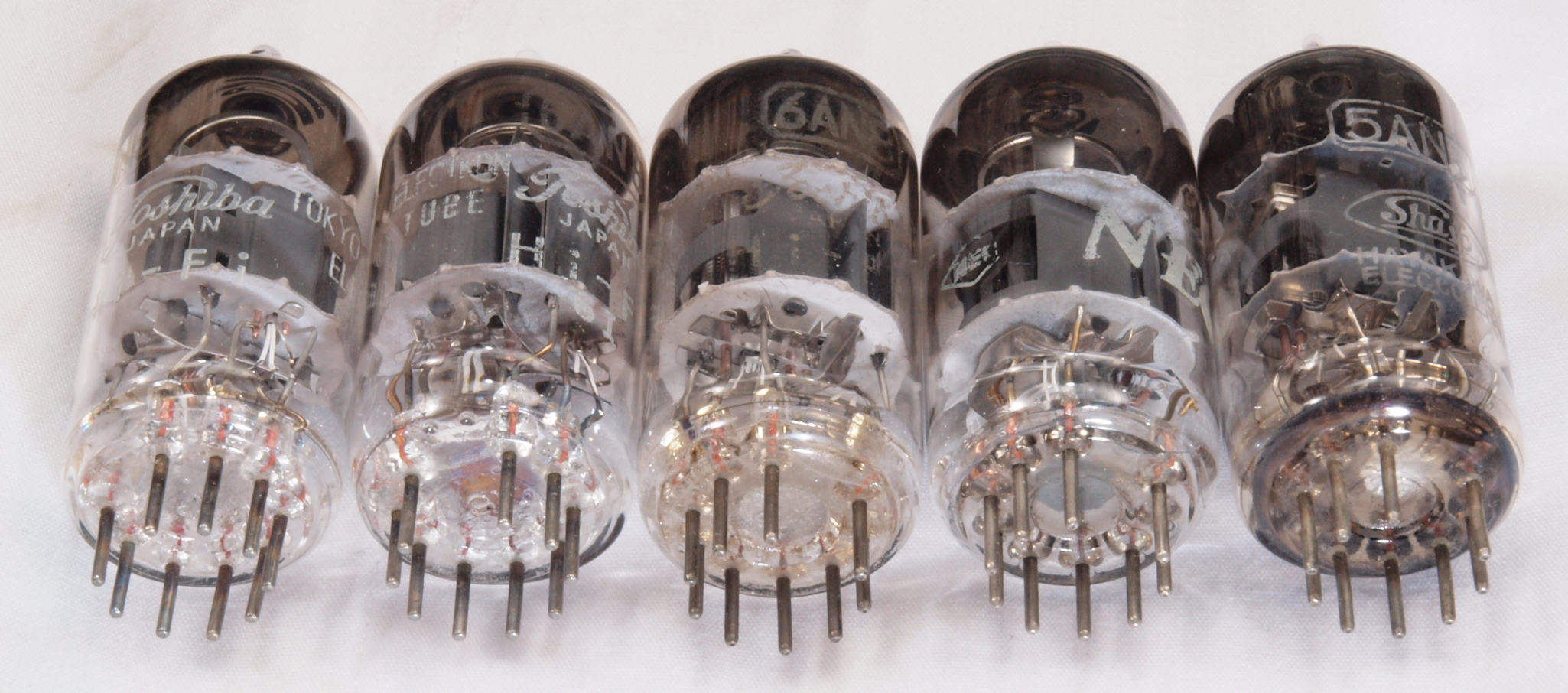 D02. 左から東芝6AN8 1本目、東芝6AN8 2本目、東芝6AN8 3本目、NEC 6AN8、東芝5AN8。