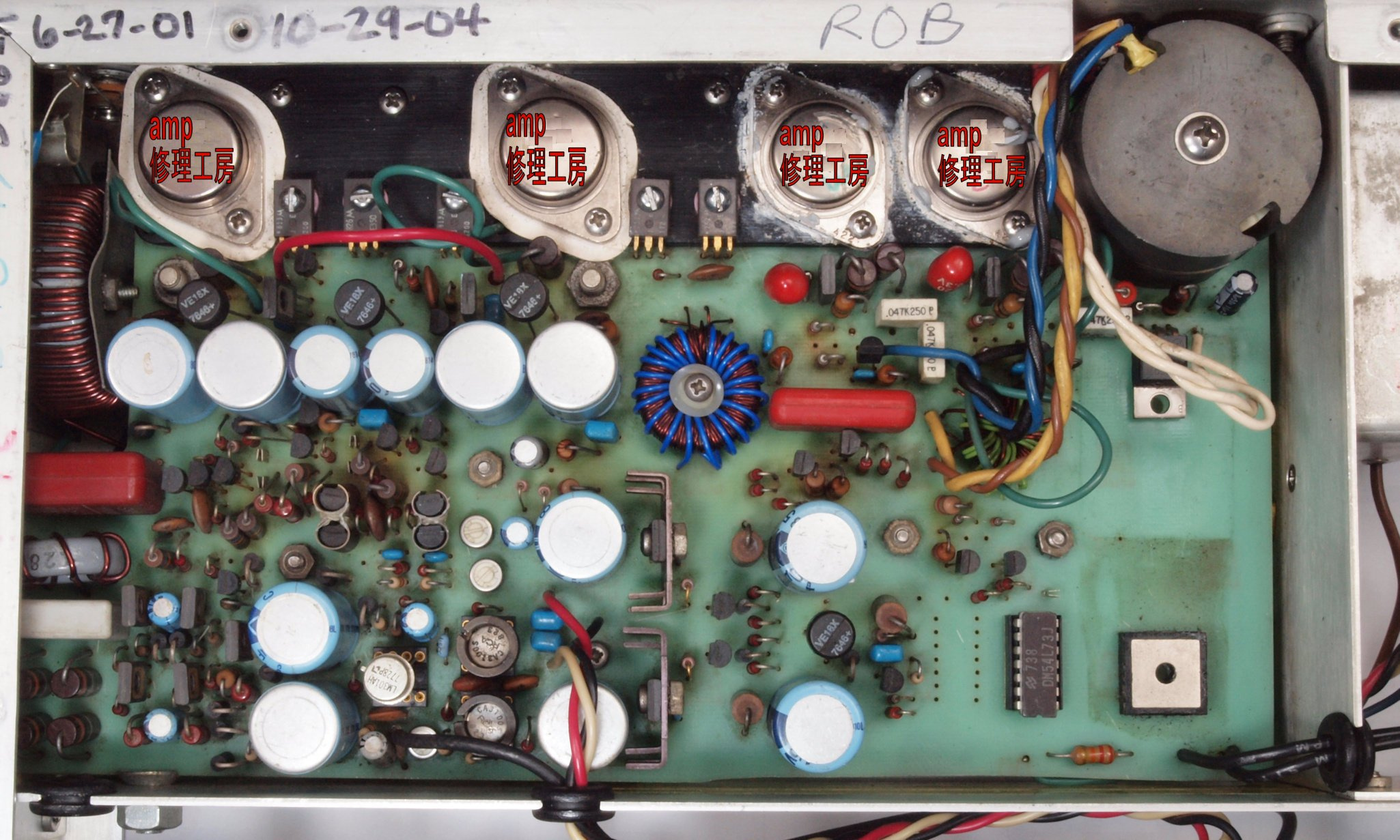| C. 修理状況。 画像をクリックすると、大きく(横幅2050ドット)表示されます。 C11. 修理中 メインAMP基板 |