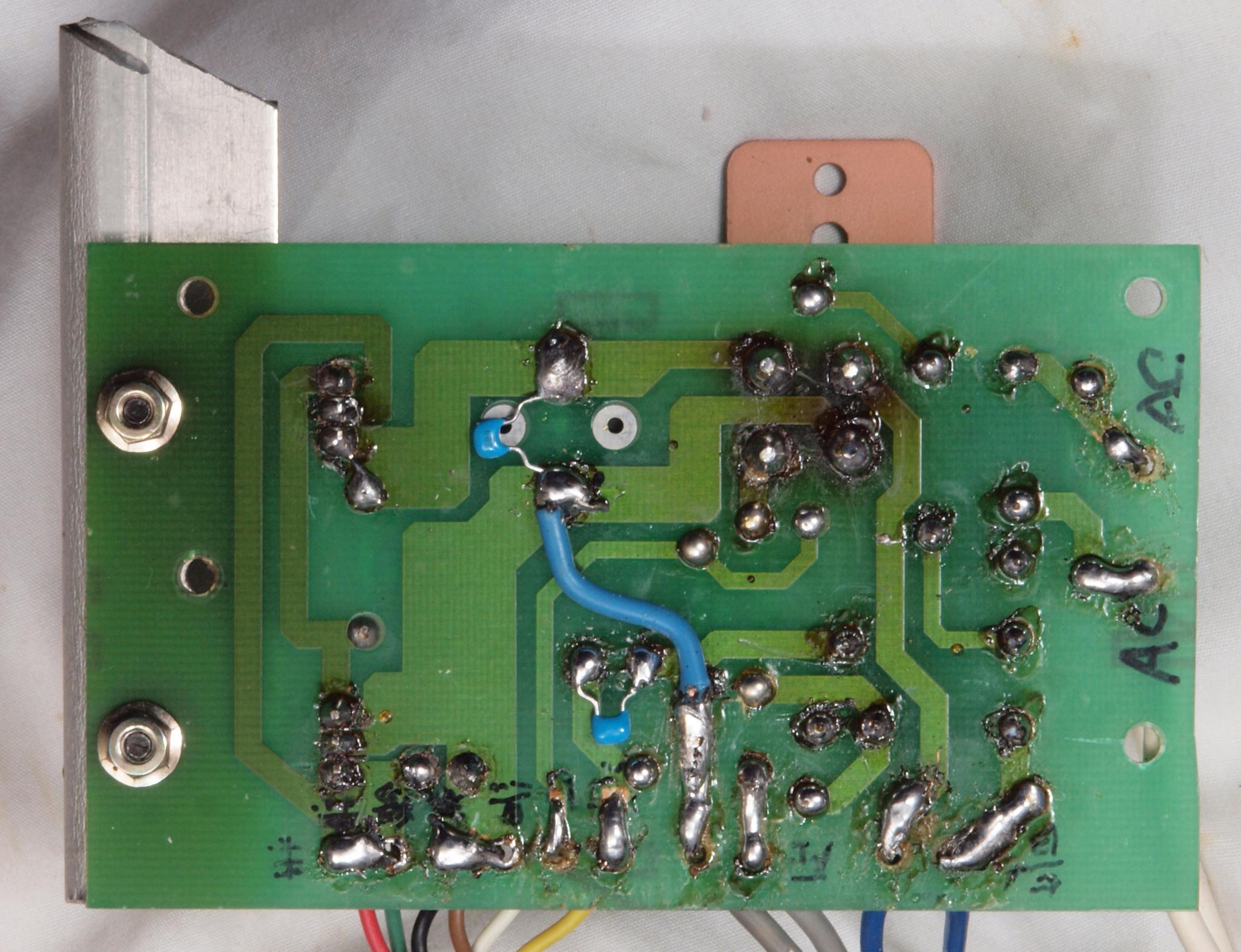 C24. 修理(半田補正)後 モーターコントロール基板裏。 フイルムコンデンサー1個追加。