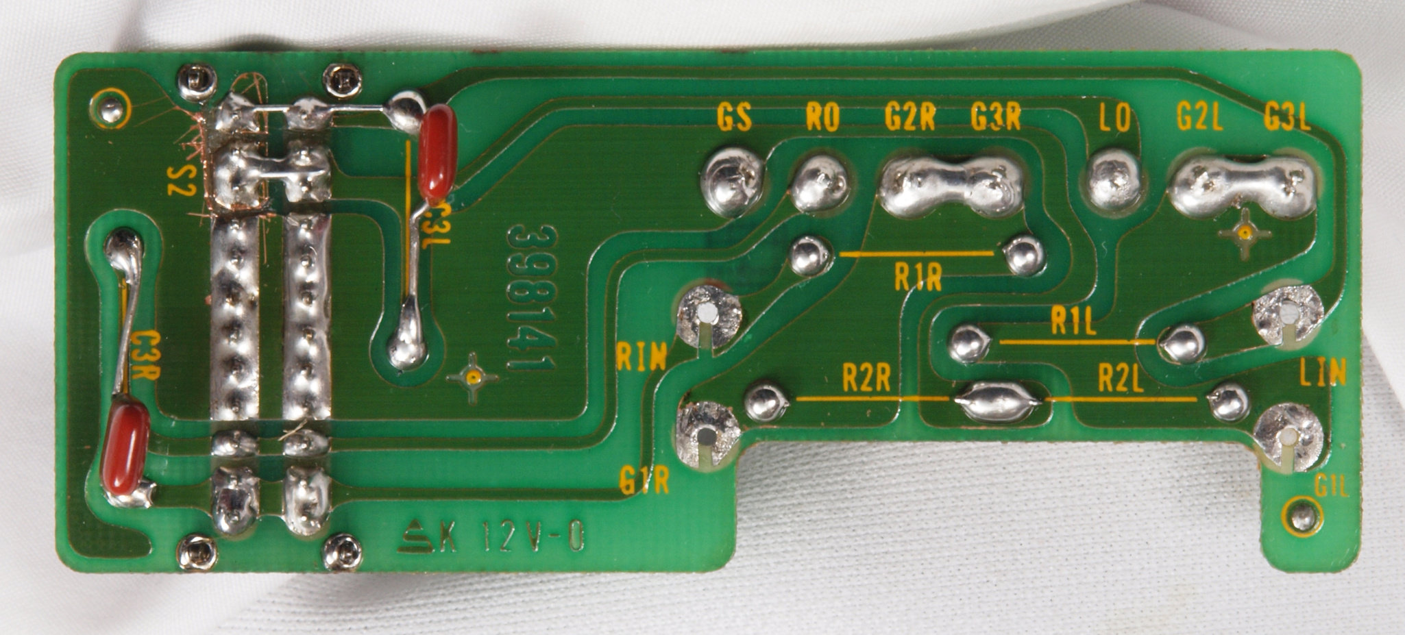 | C74. 修理中 入力RCA端子基板裏 L側もW−SWにする為、基板改造。 |