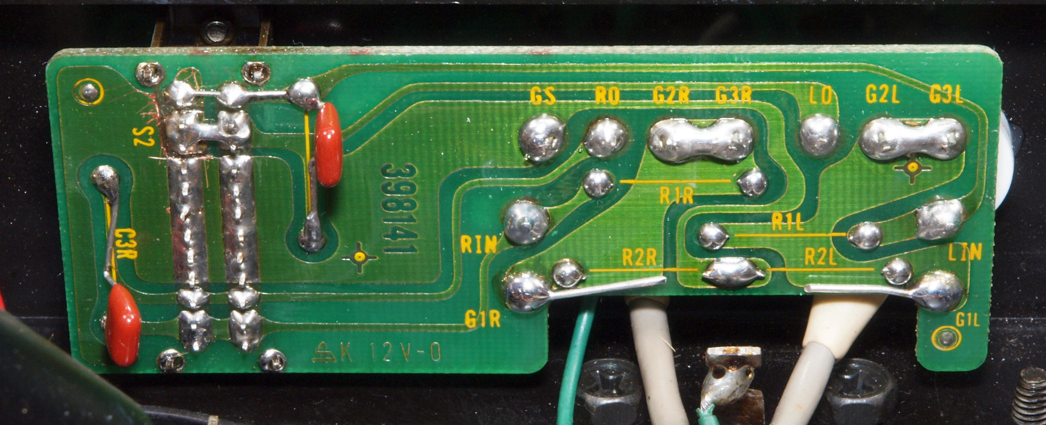 | C72. 修理後 入力RCA端子基板。 フイルムコンデンサー2個交換。 |