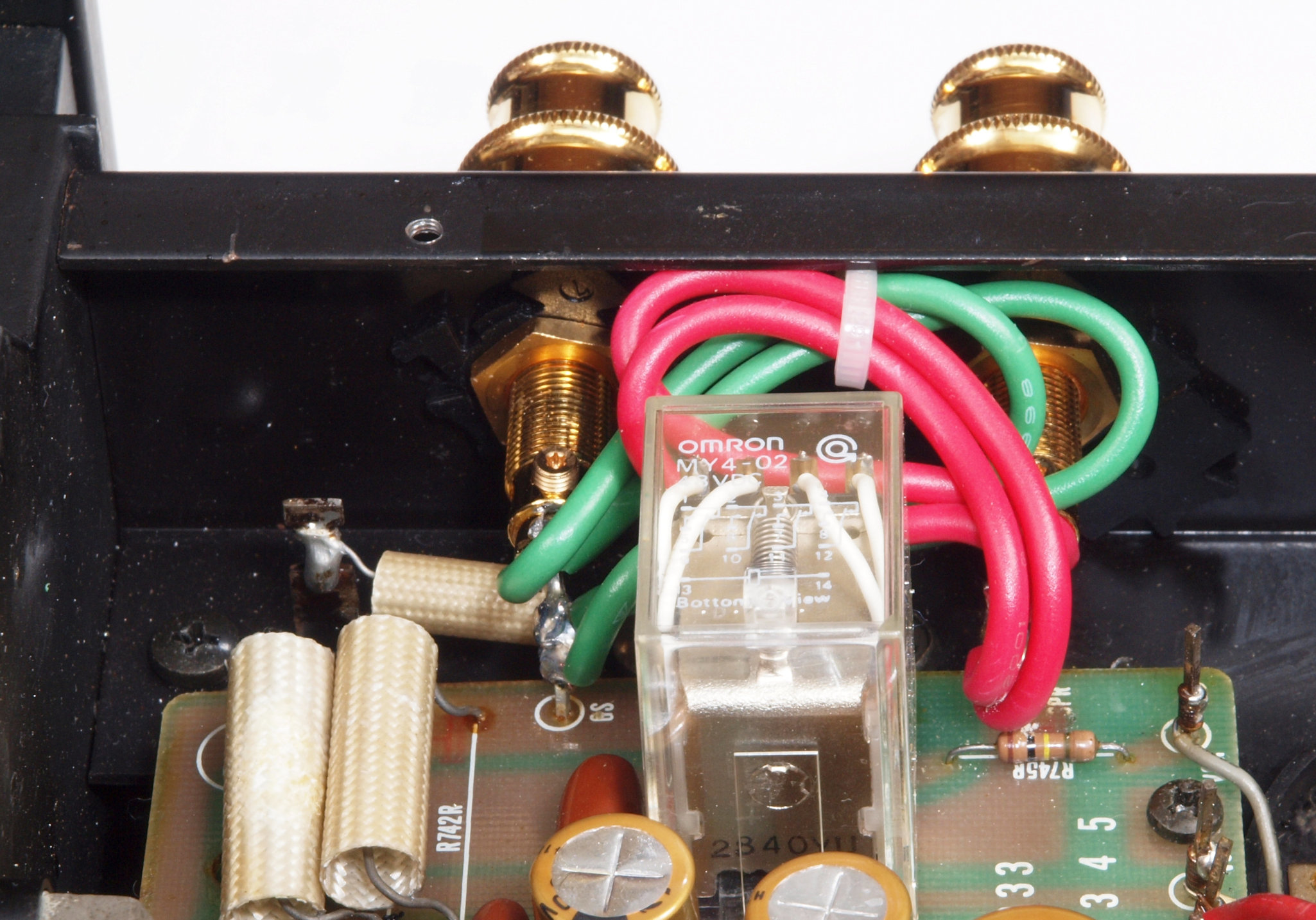 | A76. 点検中 R−SP端子。 WBT−0735に交換可能です、但し既存の取り付け穴が見えます。 |